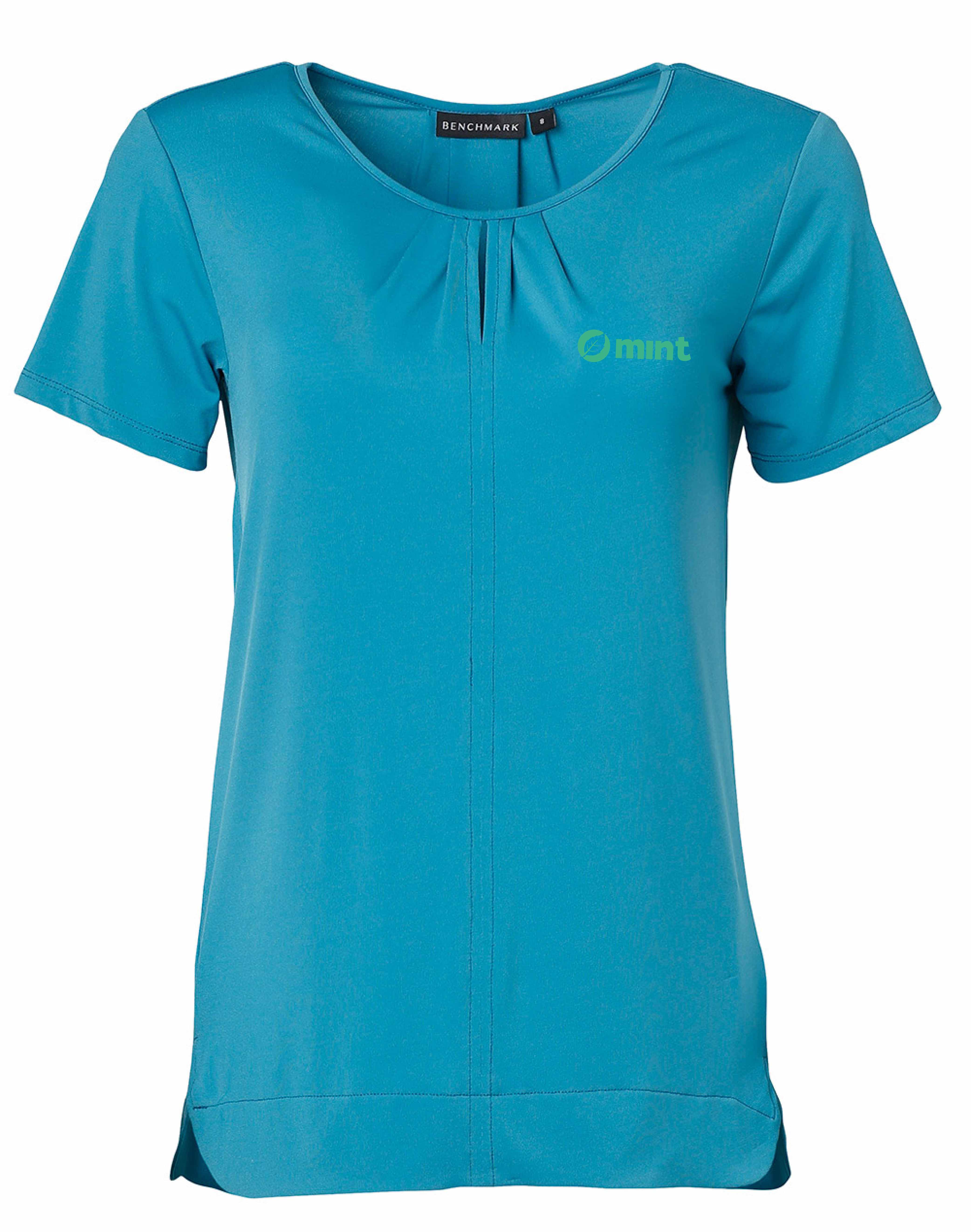 The Julia is a round neck knit top with feature front pleats, front keyhole and fold back hemline with side splits. The back centre neckline also has feature tuck pleats.