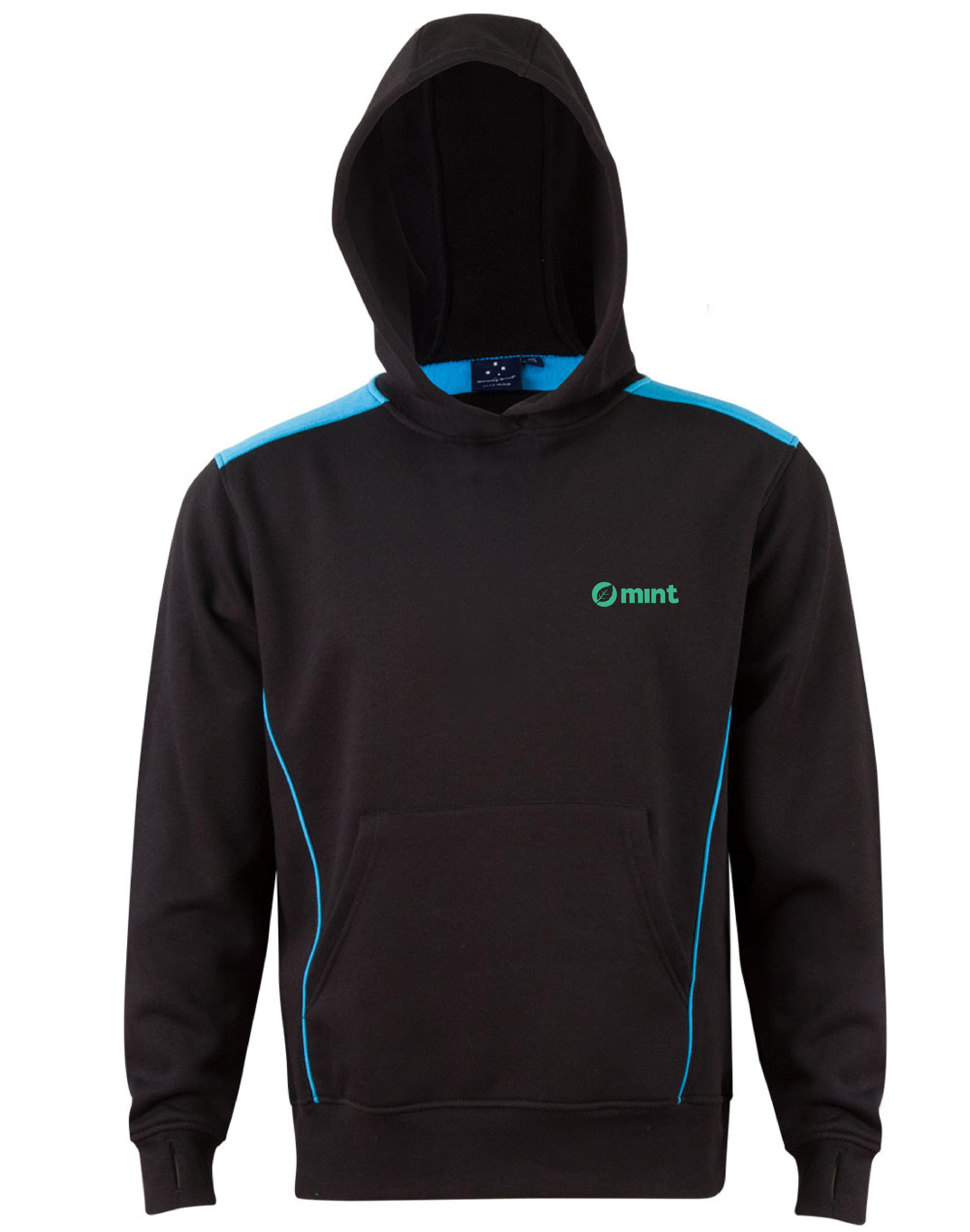On trend fashion hoodie, with contrast shoulder panels and side piping. Contemporary fashion fit. The ultimate in casual comfort.