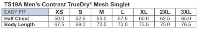 Fabric: TrueDry® Cotton Back Micromesh with Moisture-Wicking. 160gsm – 60% Cotton, 40% Polyster.