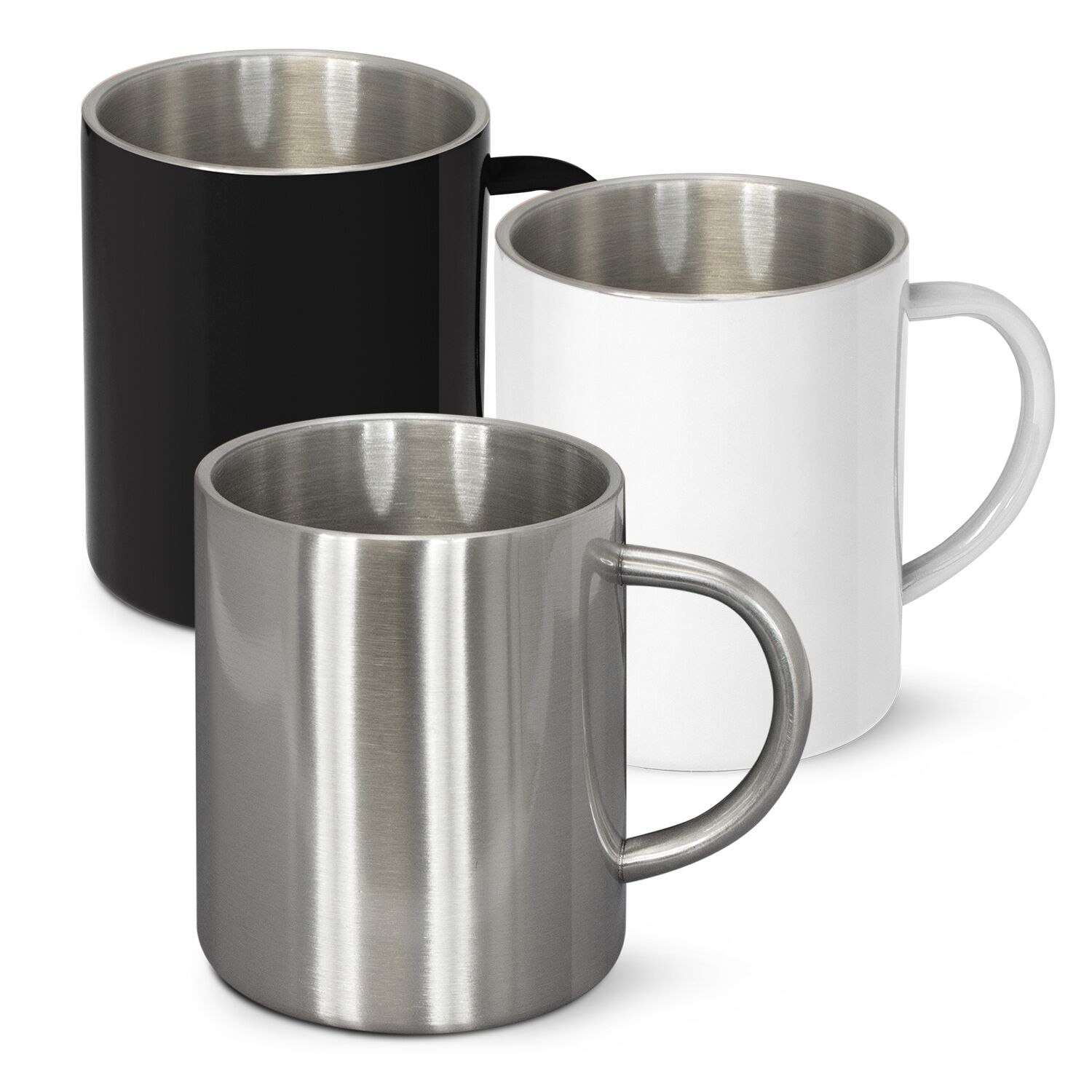 Reliable 400ml BPA-free double wall stainless steel coffee mug which keeps drinks hot for longer. The black and white cups laser engrave to a shiny steel finish and the silver cup engraves to a natural etch. This product is not dishwasher safe and handwashing is recommended.
