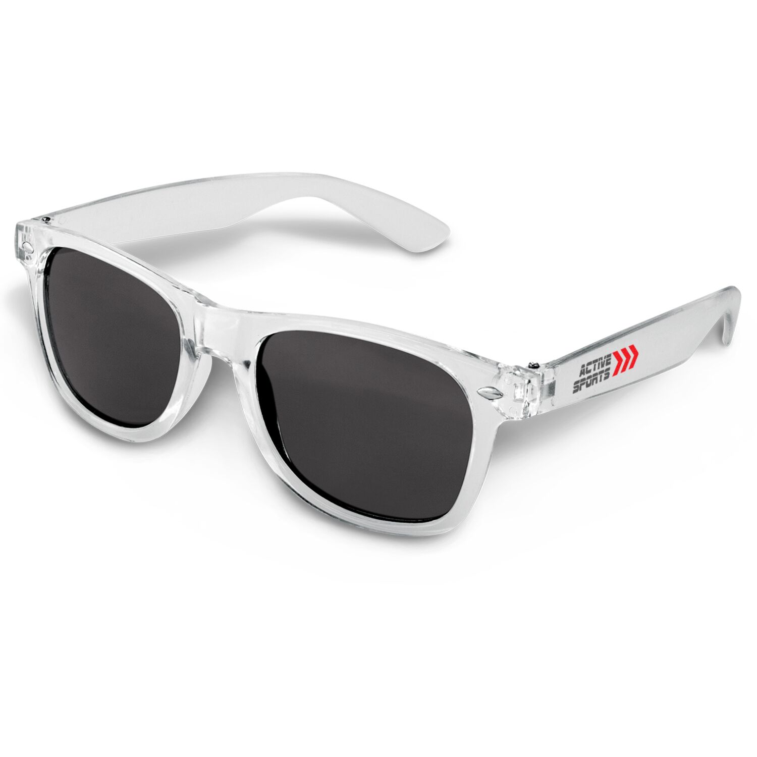 Retail quality fashion sunglasses with an impact resistant translucent polycarbonate frame and arms which are fitted with CE standard 100% UV 400 lenses that provide both UVA and UVB protection. They can be supplied in an optional microfibre pouch for an additional cost.
