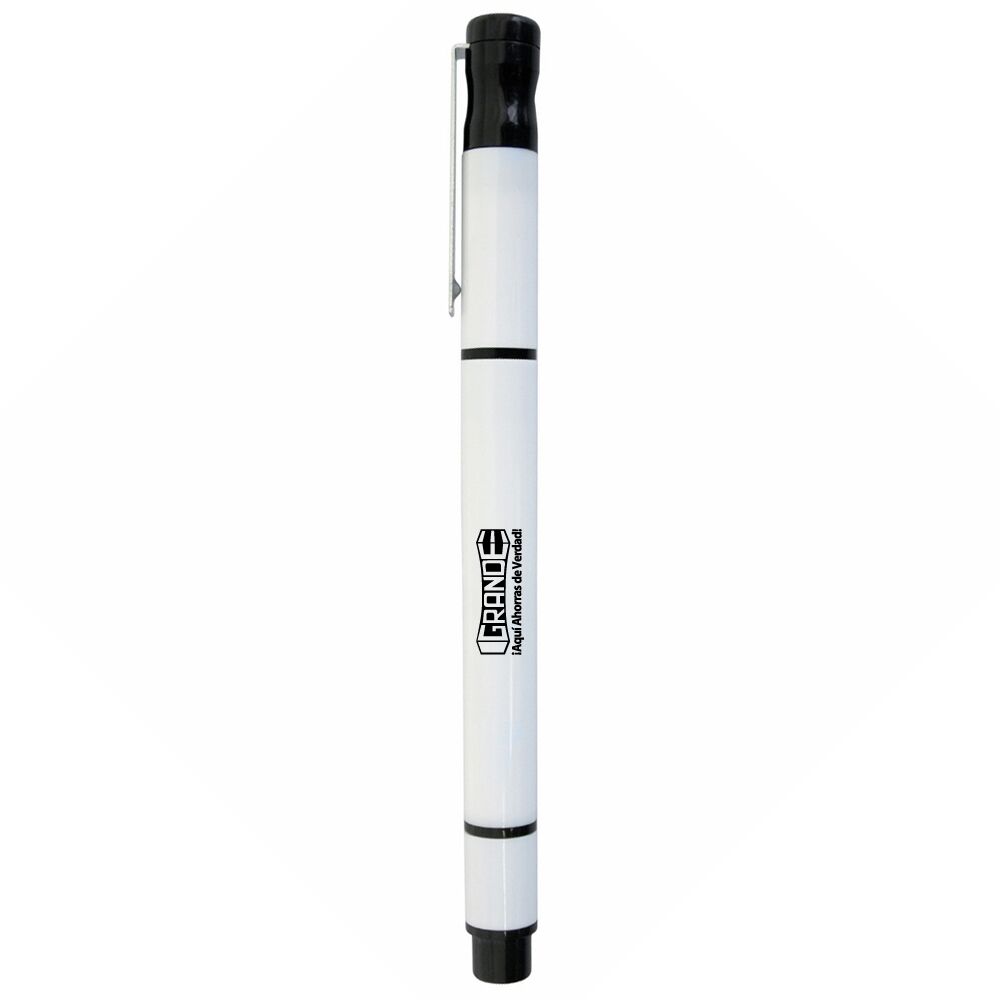 Combination 2 in 1 highlighter and pen. White coloured barrel with yellow coloured highlighter and pull off cap. Black German ink refill.