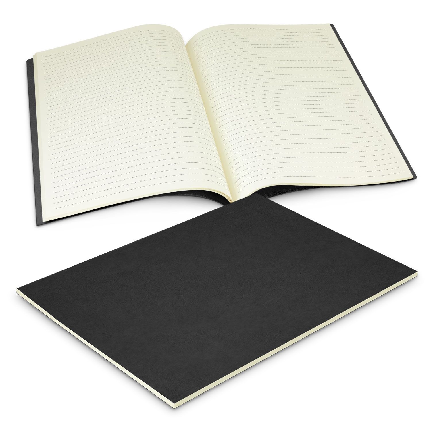 Large (approximately A4) notebook with a 250gsm kraft cardboard cover and matching saddle-stitched binding. It has 32 leaves (64 pages) of 70gsm lined paper.