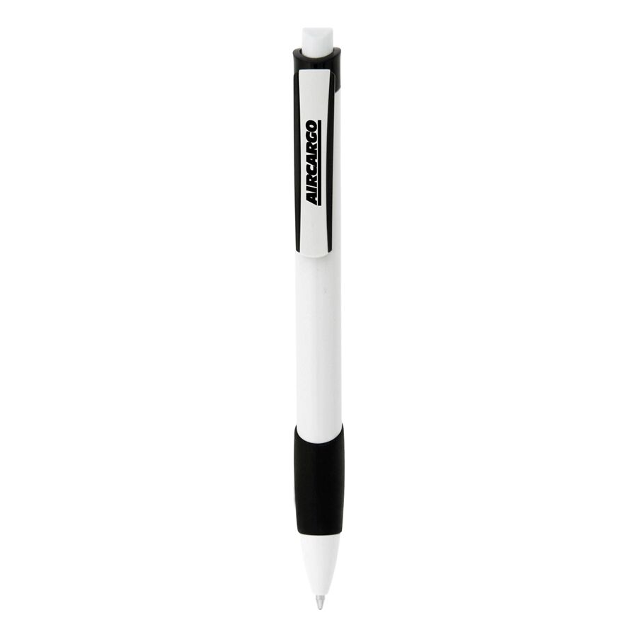 A click action ballpoint pen with a white barrel, supplied with standard black ink refill.