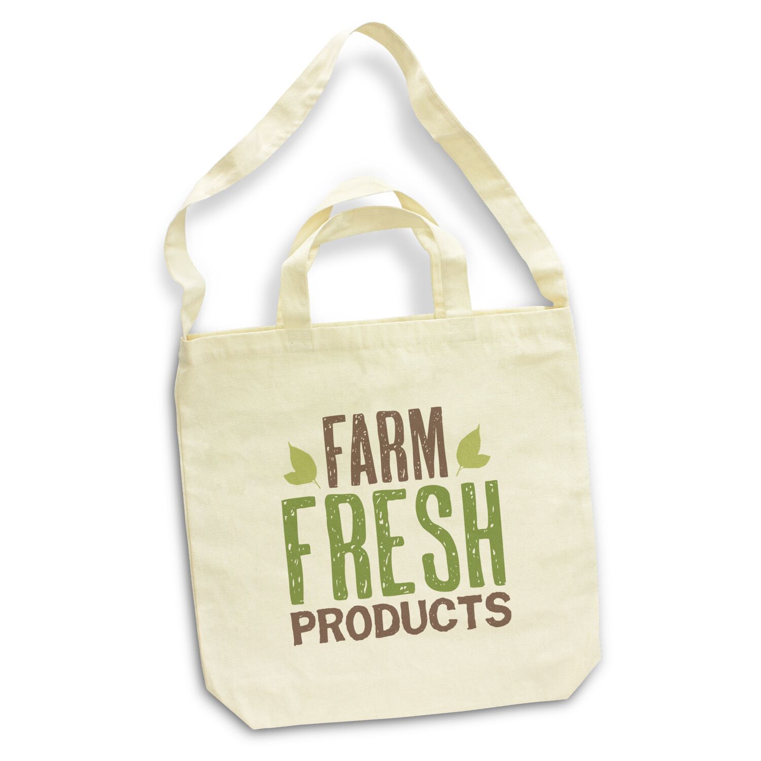 Versatile cotton bag with a large gusset which is manufactured from strong 220gsm natural cotton and can be carried on the shoulder or as a tote bag.