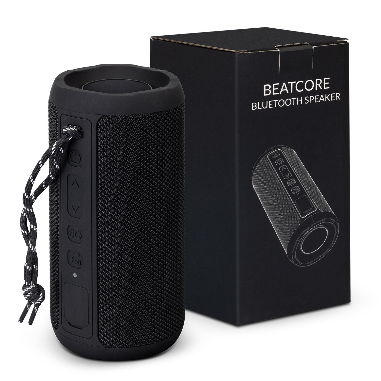 Premium water-resistant Bluetooth speaker with a hard-wearing design, perfect for outdoor use. Beatcore has two 6W speaker outputs, and music can be played for up to five hours via Bluetooth, AUX or Micro-SD card. The speaker has music, volume and hands-free controls and a built-in light display at either end of the speaker showcases the two branding areas. The speaker recharges in three hours and is presented in a printed black gift box with instructions and a charging cable.